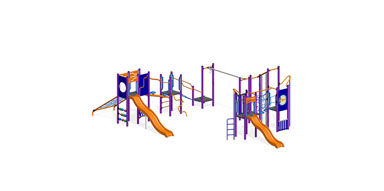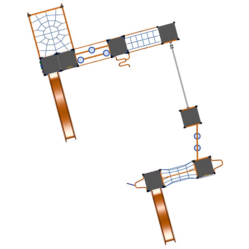 This large Elevate structure packs in loads of play value. Climbing from platform to platform across Steppers, Cargo Net Climber, Hang N Glide and Tube Web. Then we added 2 Wave Slides, Ladder Poles, Fire Pole, Inclined Spider Web, S Climbers, and low elements like an Abacus and Spiral Abacus means this playground has something for everyone.