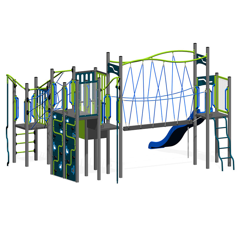 The exciting Plank Walk will be a thrill seekers dream. Climbing from one side to the other will get the pule racing and bring a sense of accomplishment when they reach the other side. This playground also has plenty of climbing elements including Rock Climbing Walls, S Climb Poles, Wave Ladder and Rung Ladder. And to exit, a wave slide and Fire Pole!