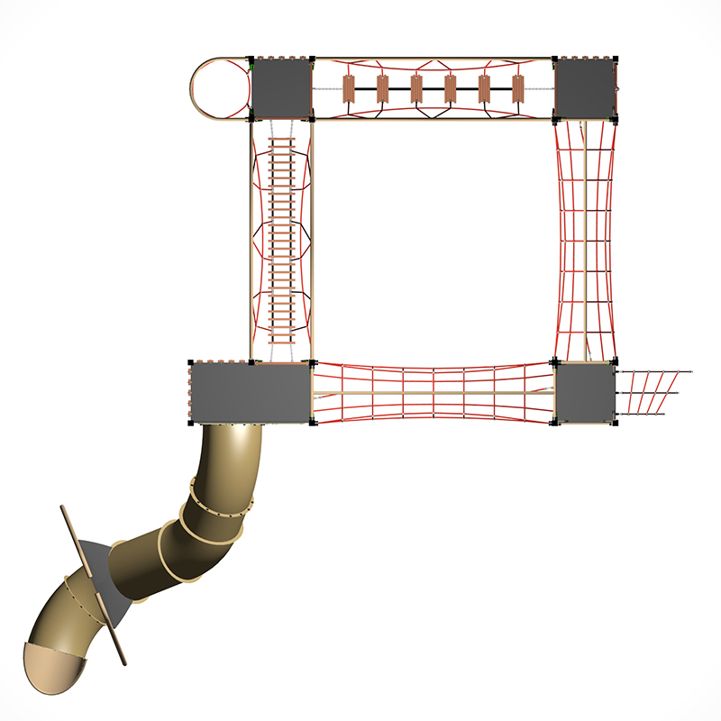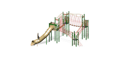 Just like running through a thrilling maze, this playground has four bridges and plenty of things to climb! A Ravine Bridge Joiner, Scatter Bridge Joiner, Tube Net, Web Tunnel, Rung Ladder, and a Web Wall! A climbers paradise with a Tunnel Slide!