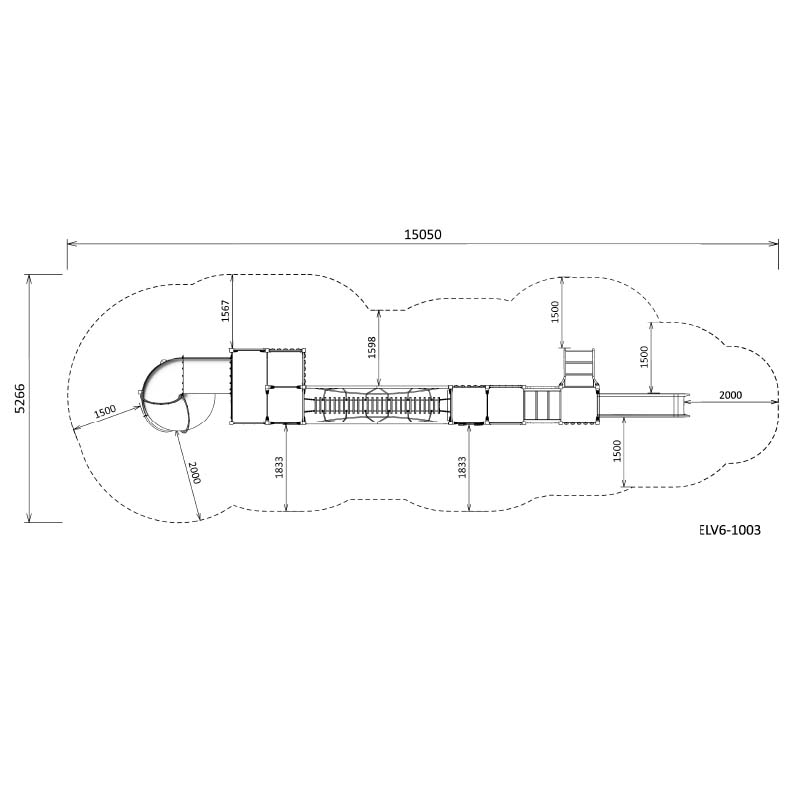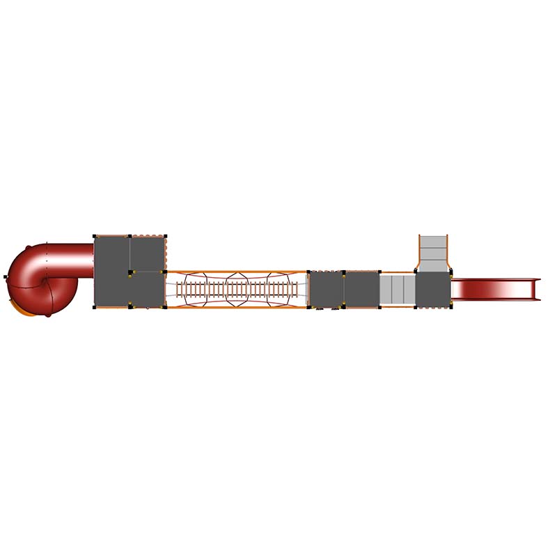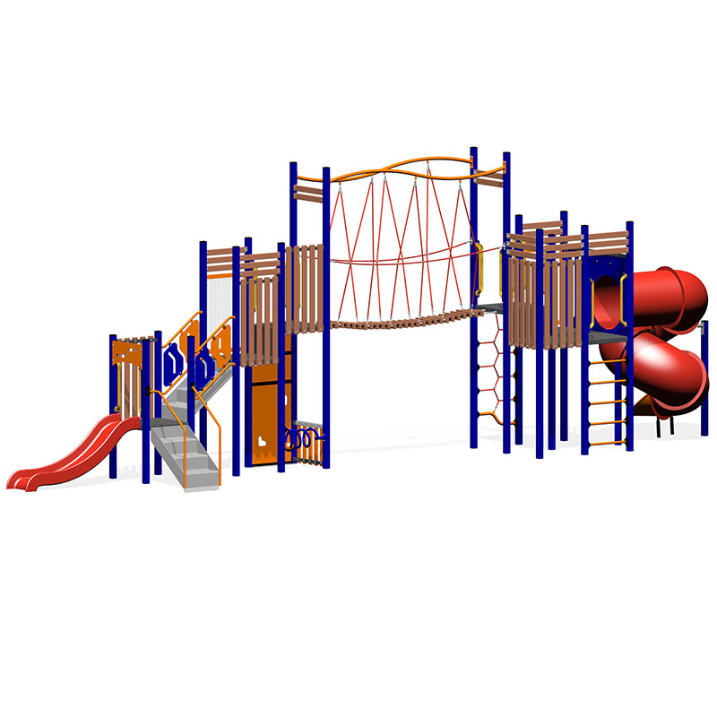 A long Elevate playground is great along ovals and fence lines. Including Rock Climbing Wall, Web Wall and Ravine Bridge. This tall bridge has 5 levels and each level provides new challenges. Add in a Spiral Slide and a low Slide and you have something for all ages.