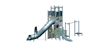 The tallest towers make for the most fun. This tall Elevate structure will have kids climbing to the top on the Rock Climbing Walls to see if they can spot the ocean, or their house, or whatever their imagination wants. The long Slide and Hang N Glide are always firm favourites in playgrounds and we added a clock panel for the little ones who don’t want to climb all the way to the top.