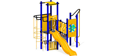 Multiple climbing entry points and a slide make this playground challenging and fun. A Wave Slide, Spiral Abacus, and a Clock Panel make this a great playground for the little ones.
