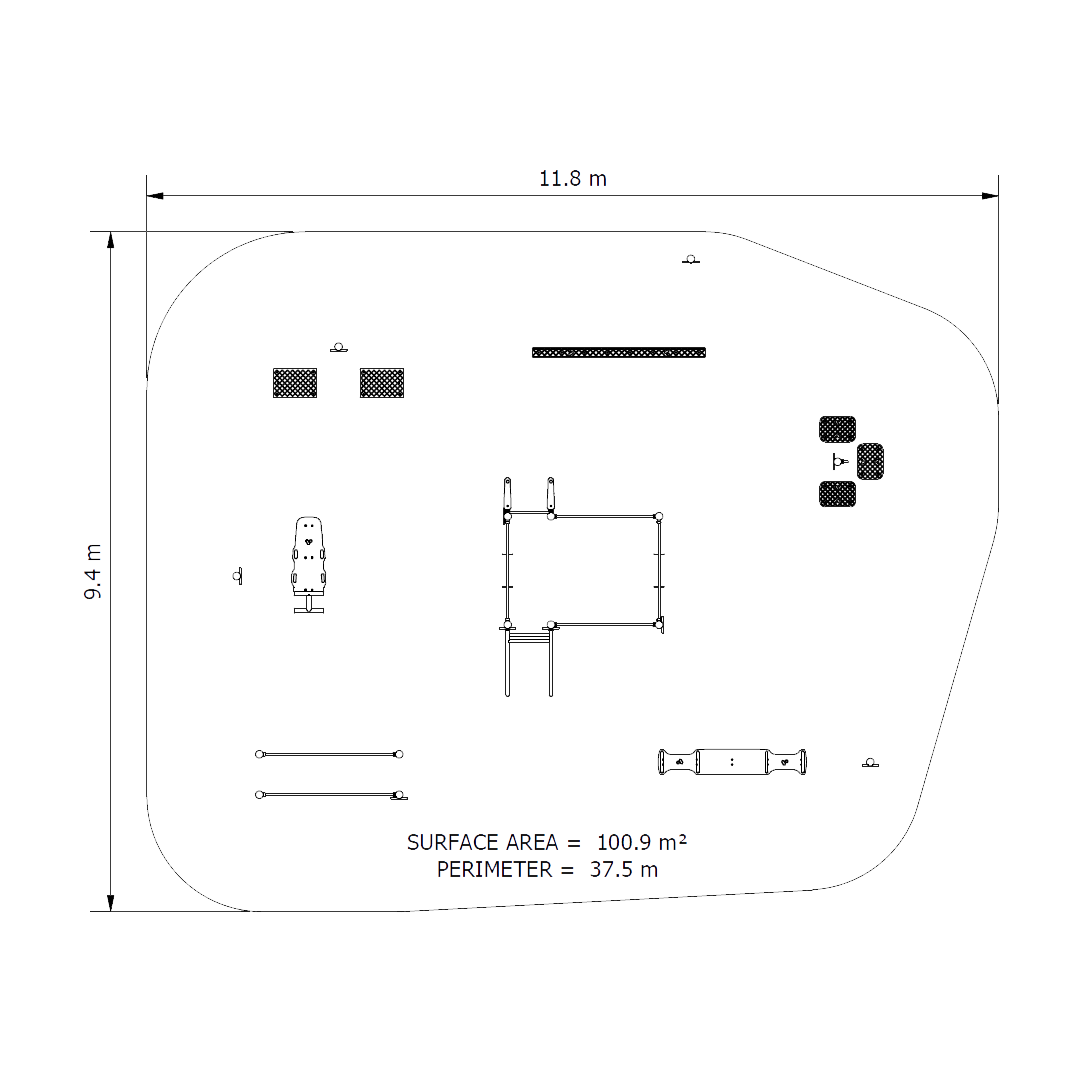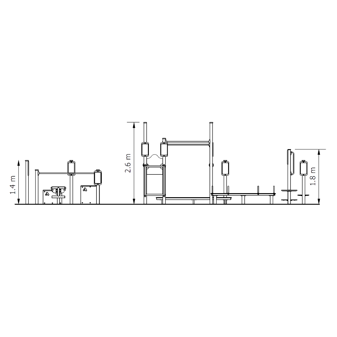 Our 12 Station Challenge is an intermediate to advanced outdoor fitness circuit with a mix of stations like pull ups, leg raises, body dips, balance beam, roman rings, box jumps and multi bench to deliver a comprehensive strength and functional workout for users aged 12 and up in community spaces.
