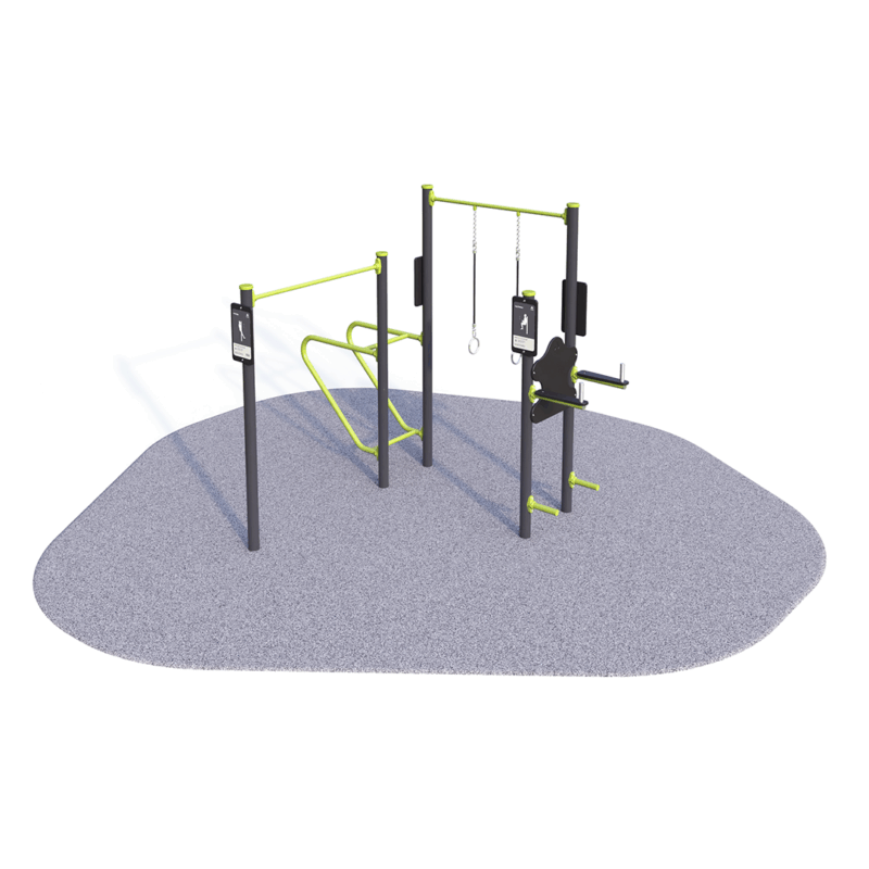 Our 3 Station Challenge is a compact outdoor fitness circuit featuring three dynamic stations targeting upper body strength, core stability, and agility, ideal for schools, parks, and community fitness spaces.