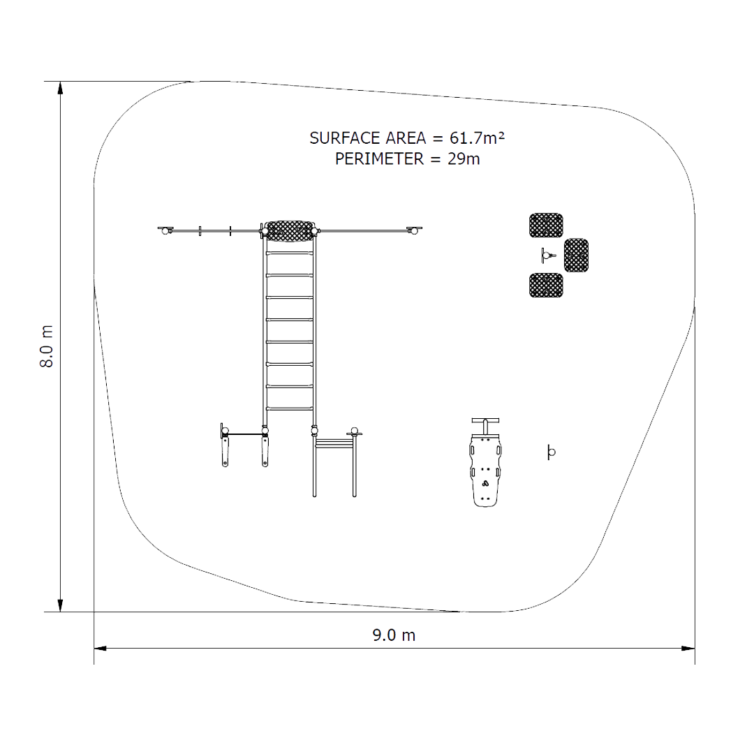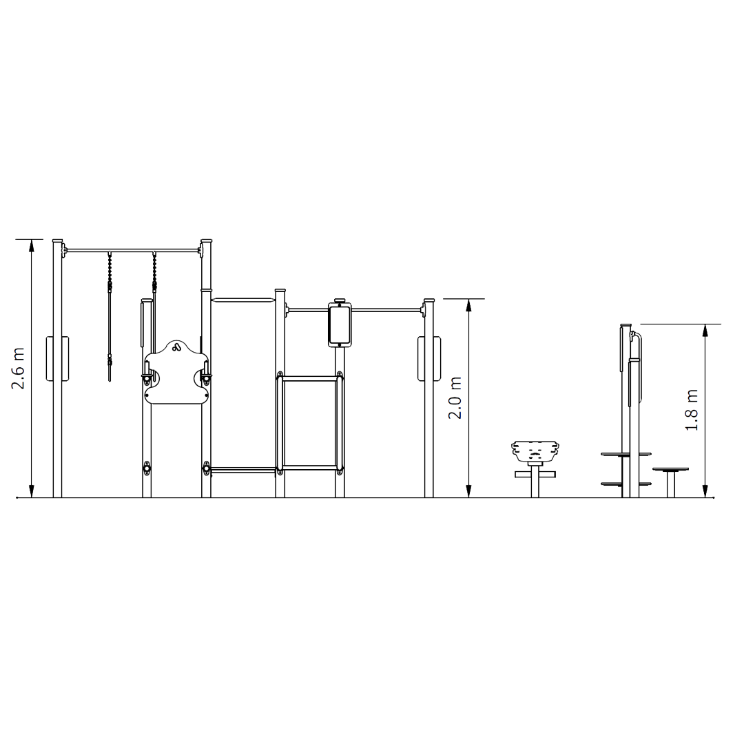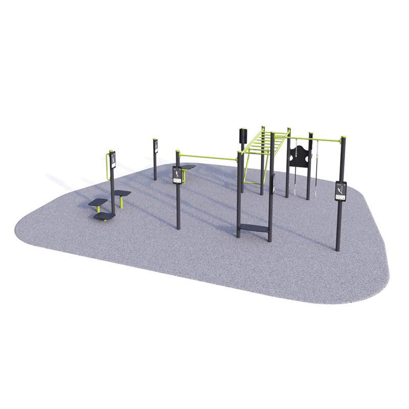 Our 7 Station Challenge is an intermediate to advanced outdoor fitness circuit with seven functional stations including gorilla bars, Roman rings, body dips, leg raises, sit up bench and step up station that deliver a varied strength and mobility workout for users aged 12 and up in parks and community spaces.