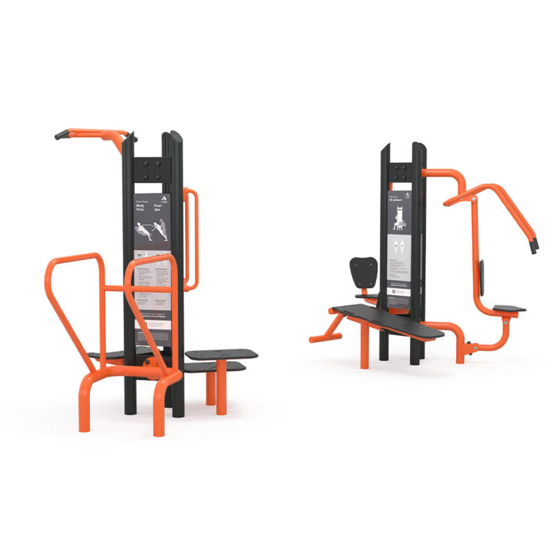 This six station outdoor fitness circuit provides a compact yet versatile space for strength and functional training. Featuring multiple exercise stations for upper body, core, and lower body workouts, it encourages full body training while improving strength, coordination, and endurance. Ideal for parks, schools, and community fitness spaces, it promotes active, healthy lifestyles.