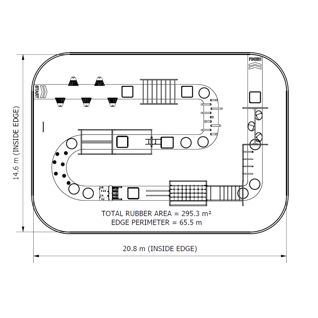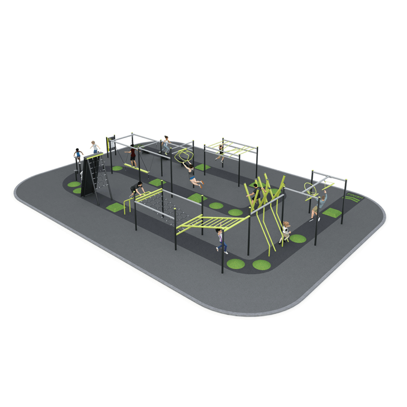 Multi Course is a versatile ninja style obstacle circuit combining multiple climbing, swinging, and traverse obstacles, designed to support progressive training, improve upper body strength, grip endurance, agility, and coordination across schools, parks, and community fitness spaces.