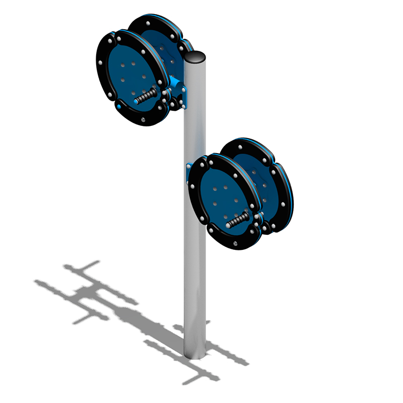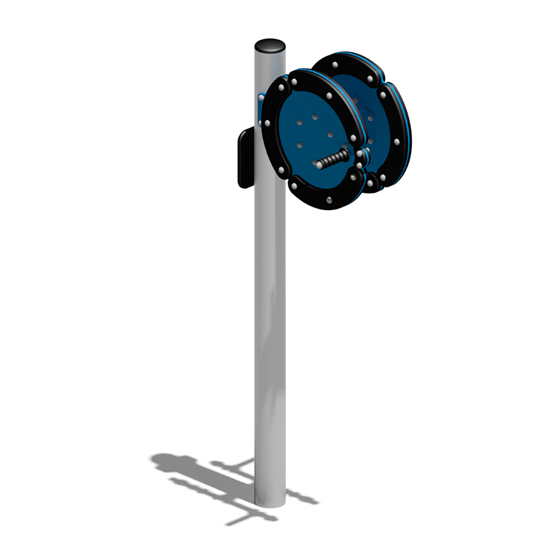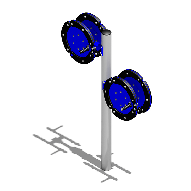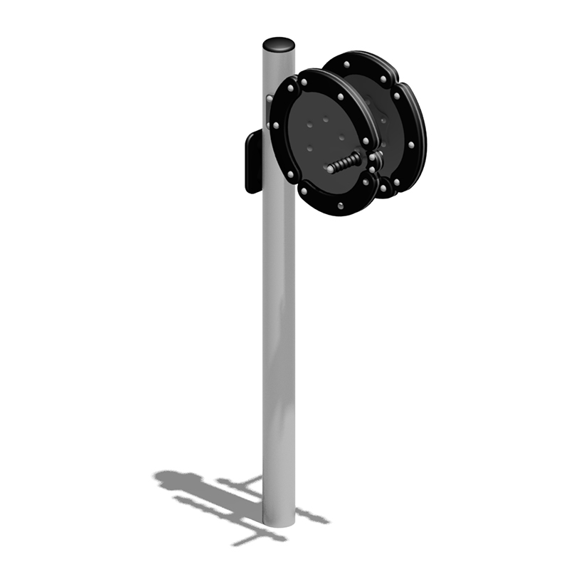 INSTRUCTIONS: Approach the equipment and hold onto the handles. Rotate the handles with increasing intensity to get the heart rate up or in slower circles to increase arm mobility.