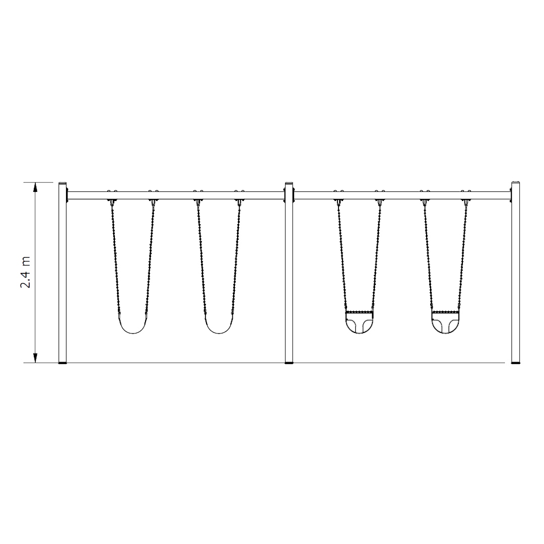The A-Frame Quad is an Australian made swing set, offered in both junior and senior versions, featuring four classic swing seats for engaging sensory play and shared fun. Crafted from durable steel with premium fittings, it provides a safe, reliable, and long lasting swinging experience, making it ideal for parks, schools, and community spaces that aim to promote active play, coordination, and social interaction.