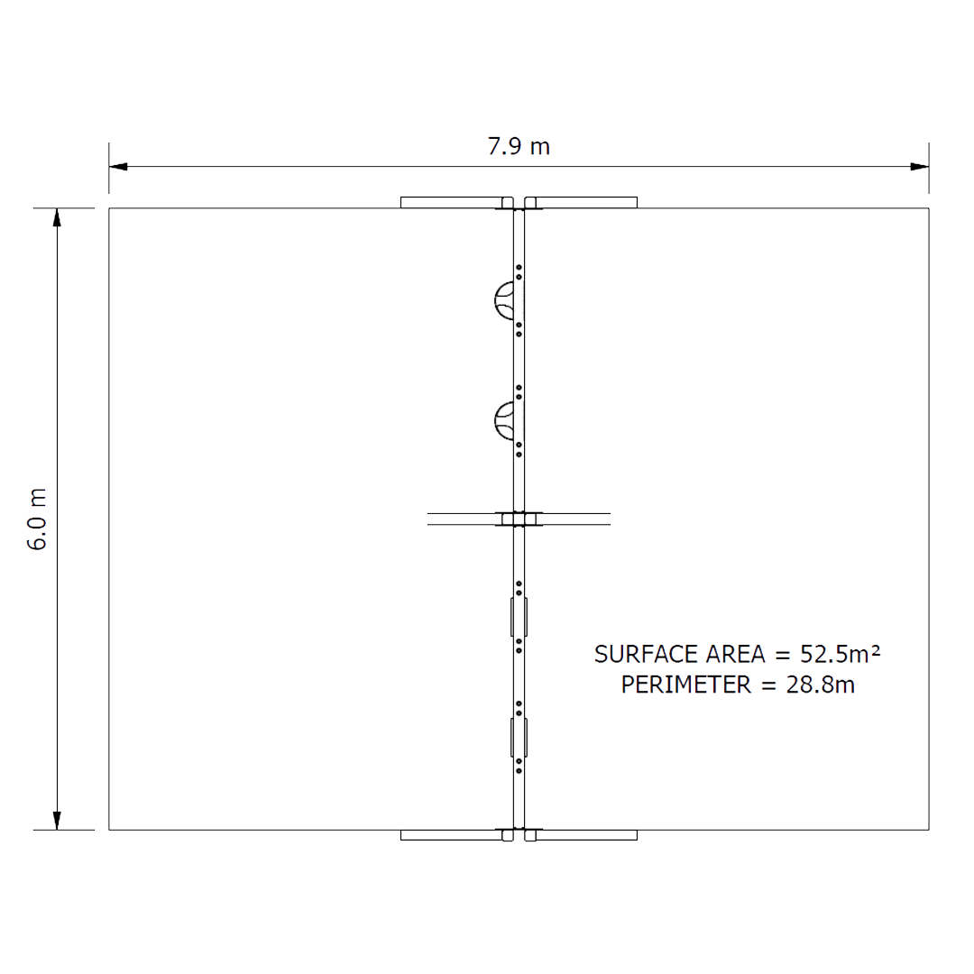 Minimum Fall Zone: 3.6m2 (Junior) 52.5m2 (Senior)