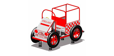 Our Ambulance is a large themed spring rocker product. It is an inclusive play item and offers the ability for many children to play on it at one time. It promotes imaginative play and role playing. The springs also make it a fun ride due to the movement that can be created by rocking.