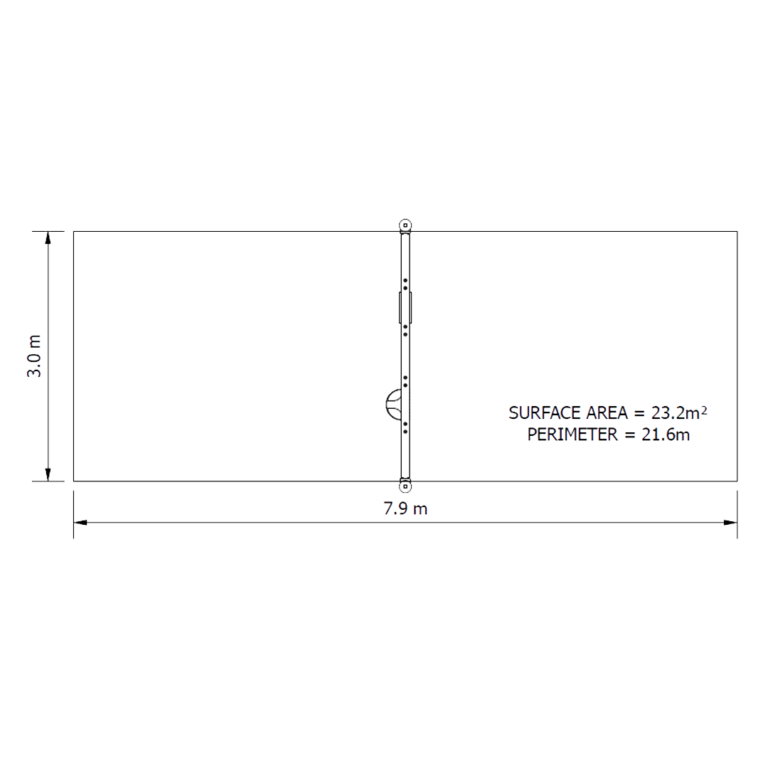 Minimum Fall Zone: 21.7m2 (Junior) 23.2m2 (Senior)