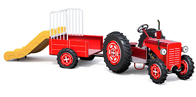 Our Tractor and Trailer combination themed Play Equipment offers more working space to play on the farm! With a Trailer and Slide added to our Tractor, there’s more room for play and farming fun! Built from durable materials such as galvanised steel this popular themed play equipment will withstand many seasons of harvest!