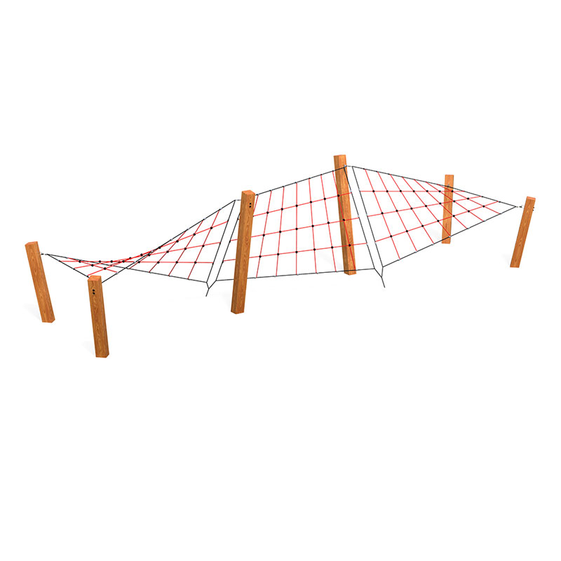 Our Big Timber Torsion Net provides a longer journey for children to challenge their skills! Balance, coordination, problem sovling and strength are all tested in our Big Timber Torsion Net!