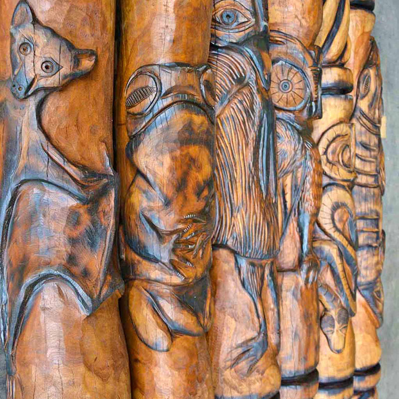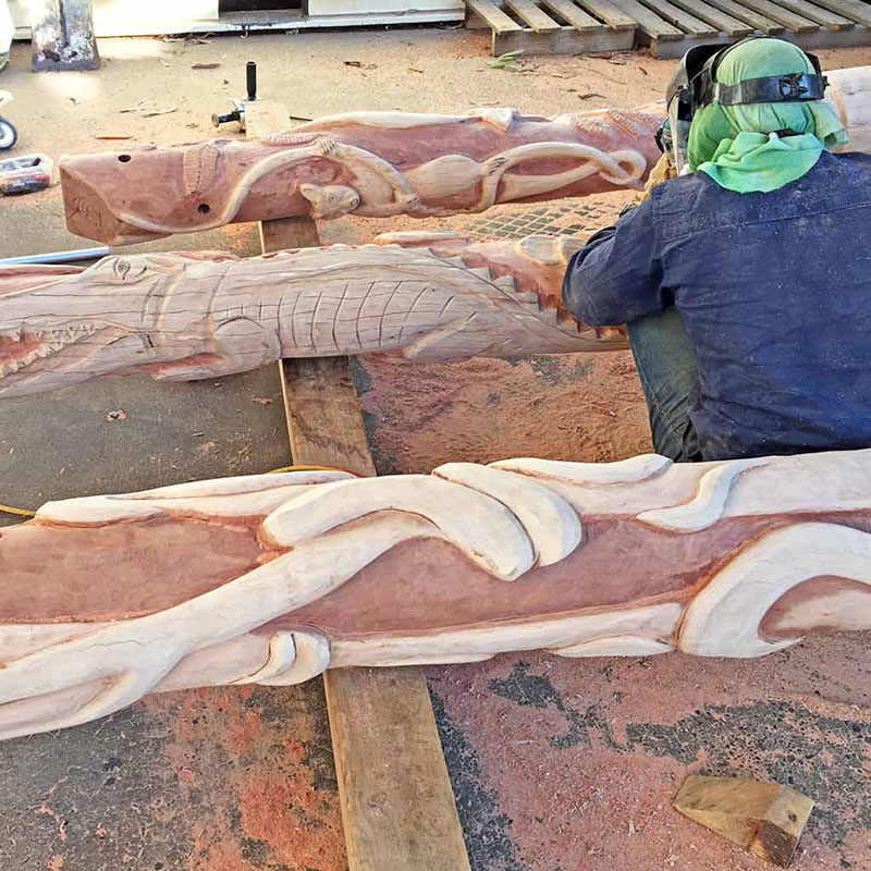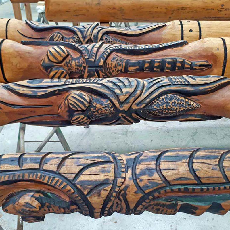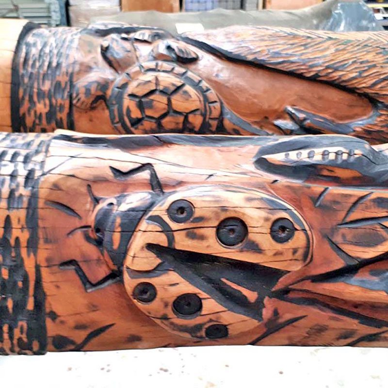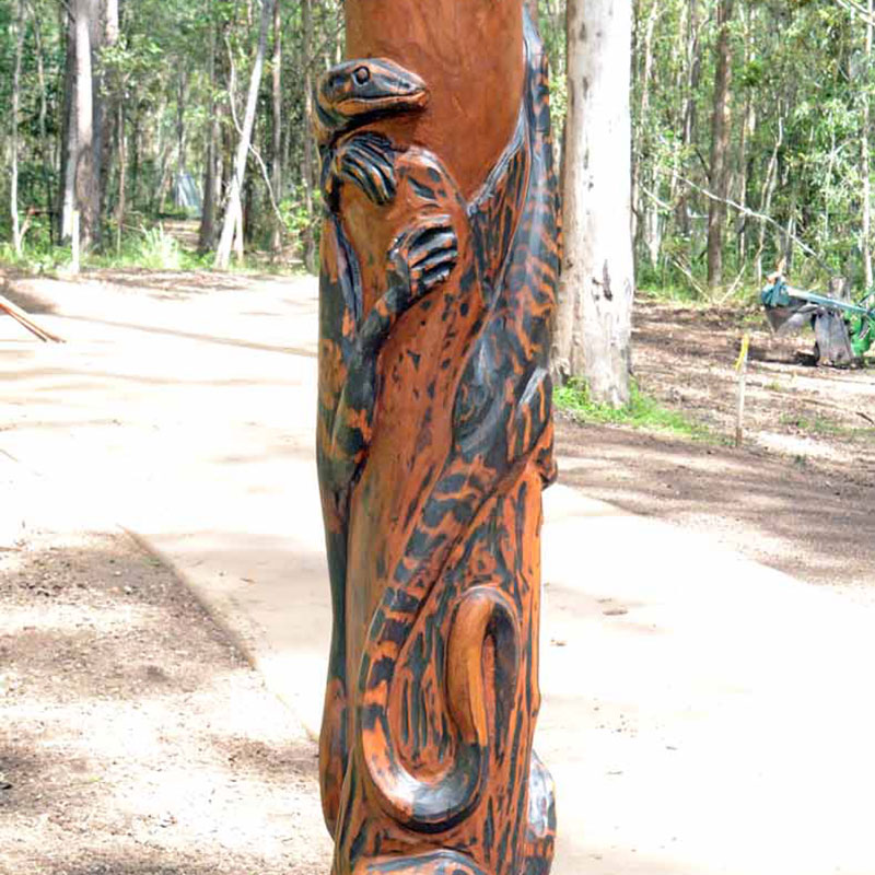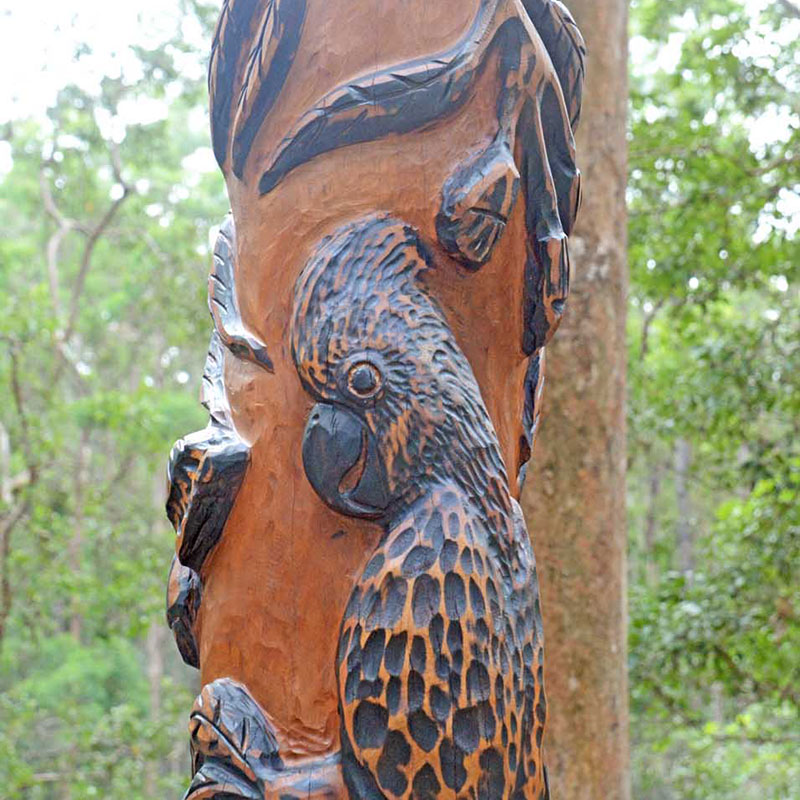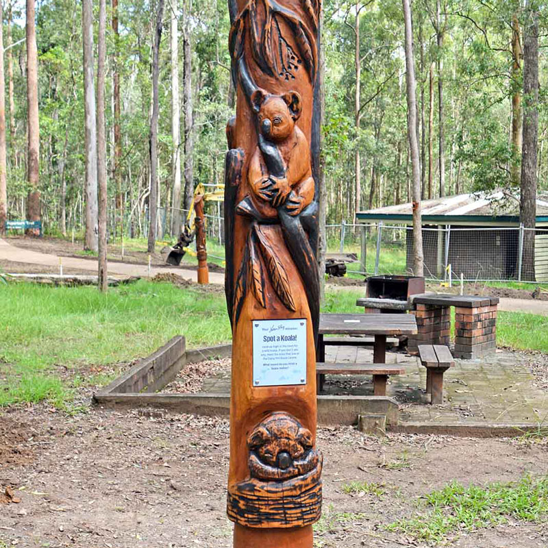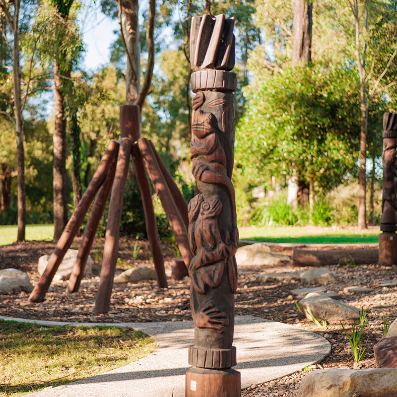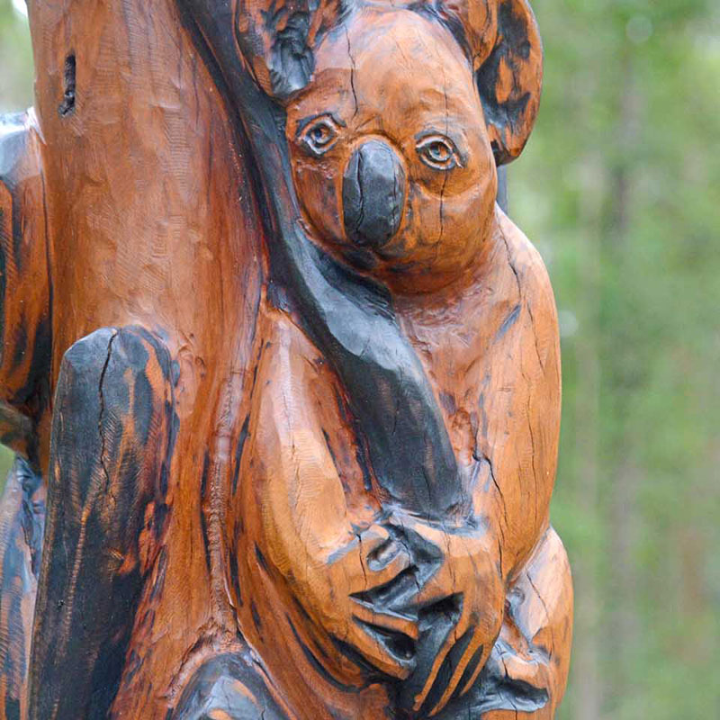 Sitting high amongst the trees, these hardwood totems make a prominent statement in nature play landscape projects. Choose smooth uncarved hardwood for natural simplicity, pick from our range of standard carvings or request a bespoke handcarved design that’s unique to your project and surrounds. Each handcarved totem is unique, which means it may differ slightly from the images shown.