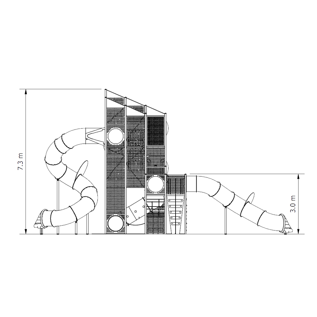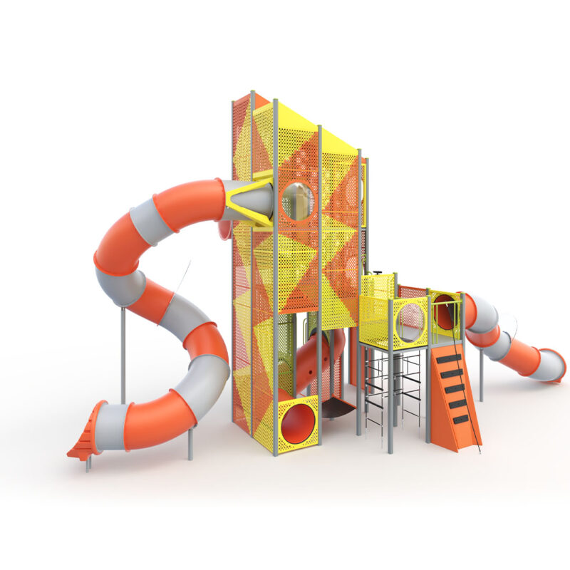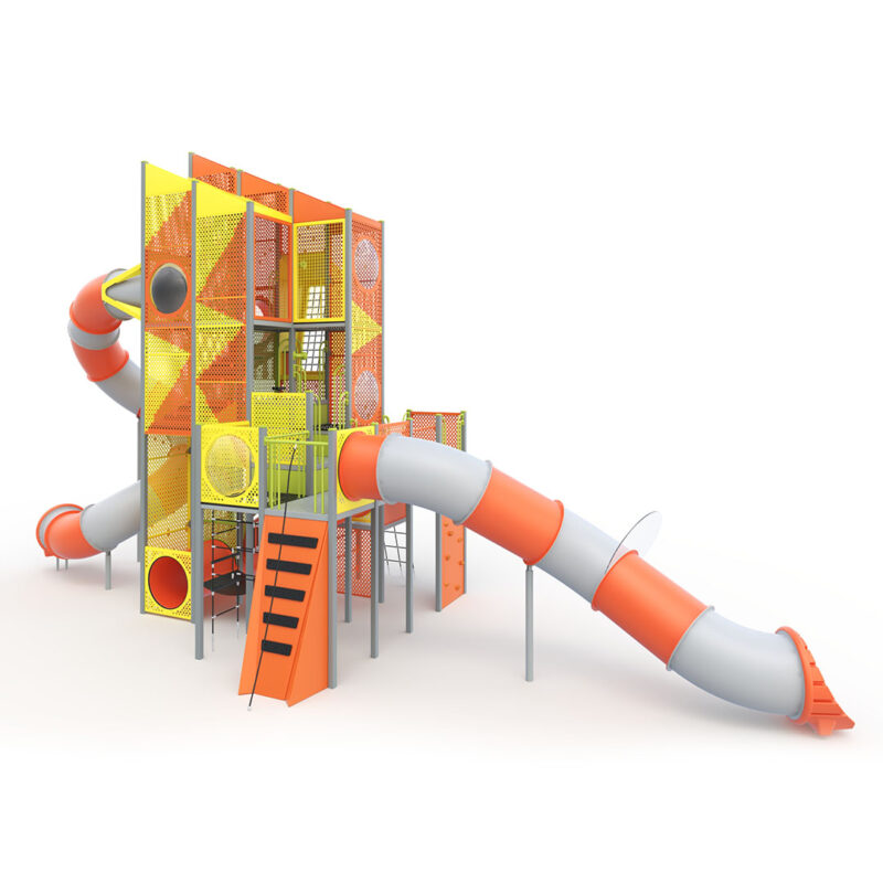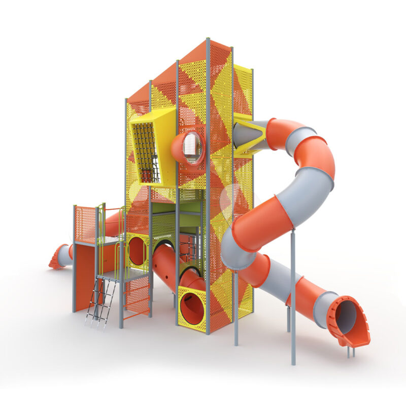 The Amber Banksia tower offers a range of exciting challenges for all ages. Designed for imaginative, sensory, and social play, it features junior slides and sensory panels at lower levels, progressing to more complex climbing opportunities and impressive twisting slides higher up. This structure encourages kids to build confidence while exploring new ways to play and develop their skills.