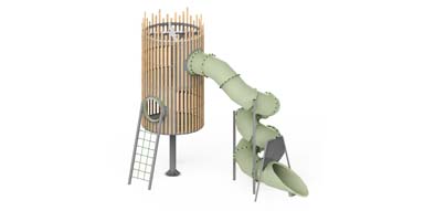 Lofts are premium play towers designed to rise up and stand out, creating outdoor spaces that become iconic family destinations. This play tower is 5.7 metres high, providing endless opportunities for kids to climb with an epic twisting slide to explore while maximising ground space and street appeal.