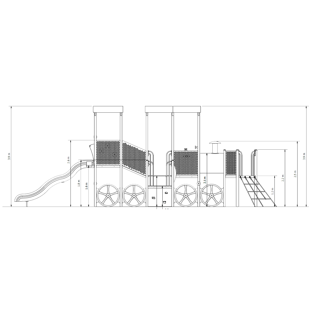Loco is a dynamic train-themed playground structure that turns every playspace into a destination kids love. With engaging climbing elements, imaginative features and a design that inspires exploration, Loco invites children to climb, pretend and connect in a fun, social play setting. Perfect for parks, schools and community spaces looking to deliver standout themed play, this playground brings motion, creativity and big smiles to every adventure.