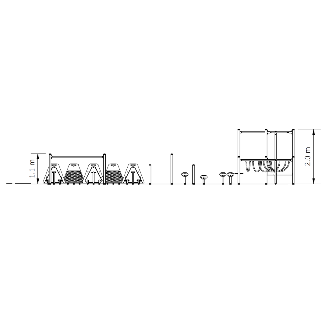 Our Strive Circuit is an active play circuit that challenges kids with a sequence of obstacles designed to build strength, coordination and motor skills while encouraging fun, goal-driven movement in schools, parks and community spaces.