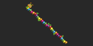 A friendly caterpillar showcasing letters for learning.