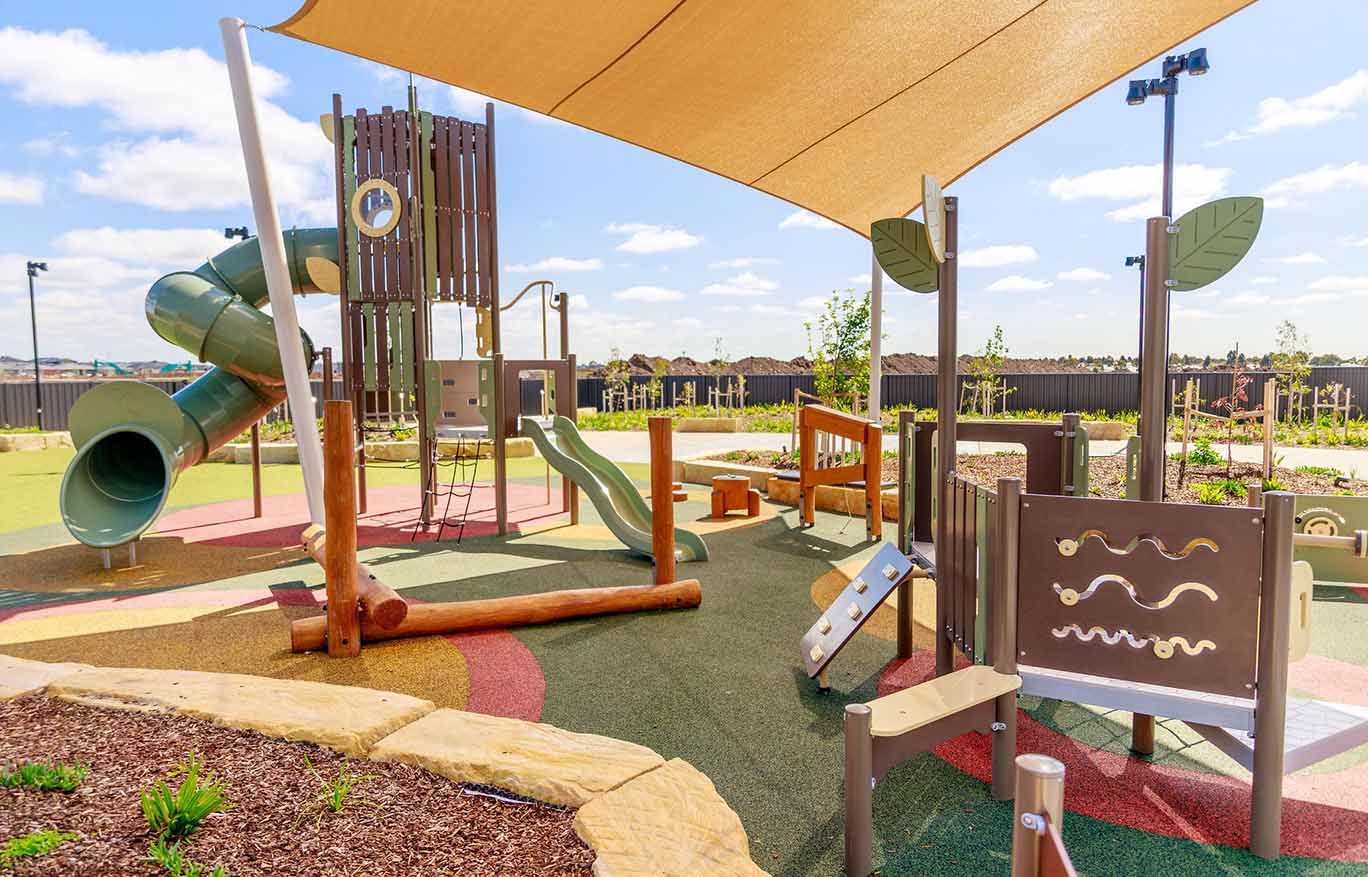 The new Mambourin Marketplace playground features a standout SturdiFlex play structure that sets a new bar for community play spaces, combining engineered strength with design flexibility so it thrives in the local climate and everyday use; built using high‑quality materials and a modular format, the SturdiFlex system lets designers tailor the layout to suit the precinct’s needs while delivering a safe, engaging environment that invites climbing, exploring, balancing and imaginative play for a wide range of ages, with durable finishes, customisable features and inclusive elements that make the space feel welcoming and built to last for years of active neighbourhood play.